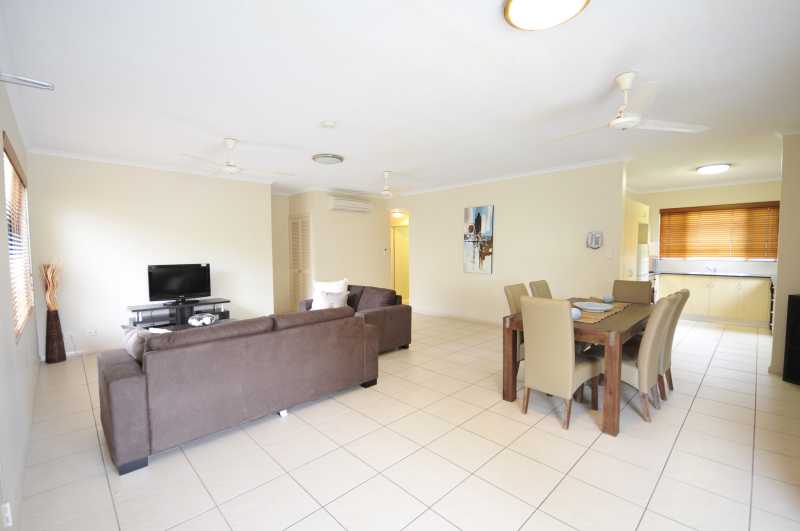 The kitchen and very spacious lounge/dining area overlook the beautiful pool area.